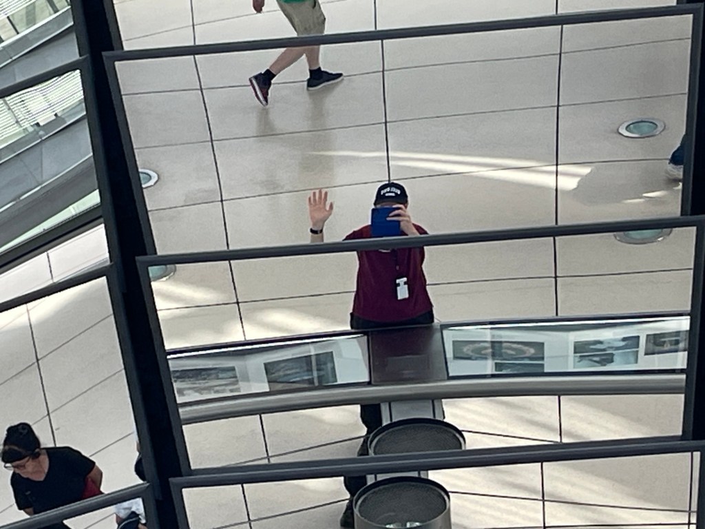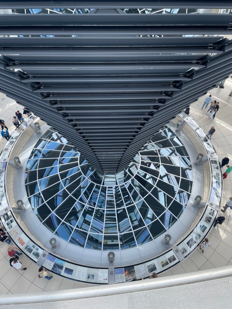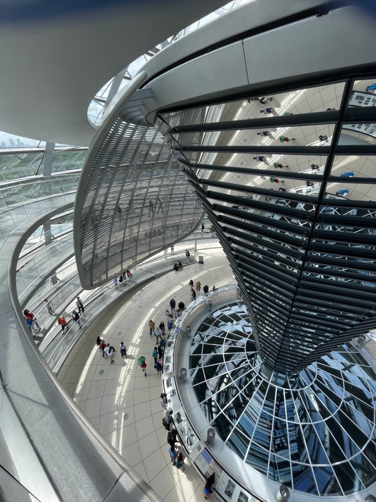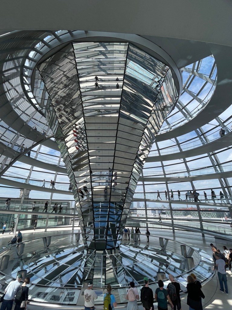 We then visited the Reichstag which is the German Parliament building. Originally built in 1894, it was completely renovated and a new glass dome constructed on top starting in 1994. Mamfa marvelled at the impressive architecture and engineering of the dome such that the helical pedestrian ramps appear to float around the dome.