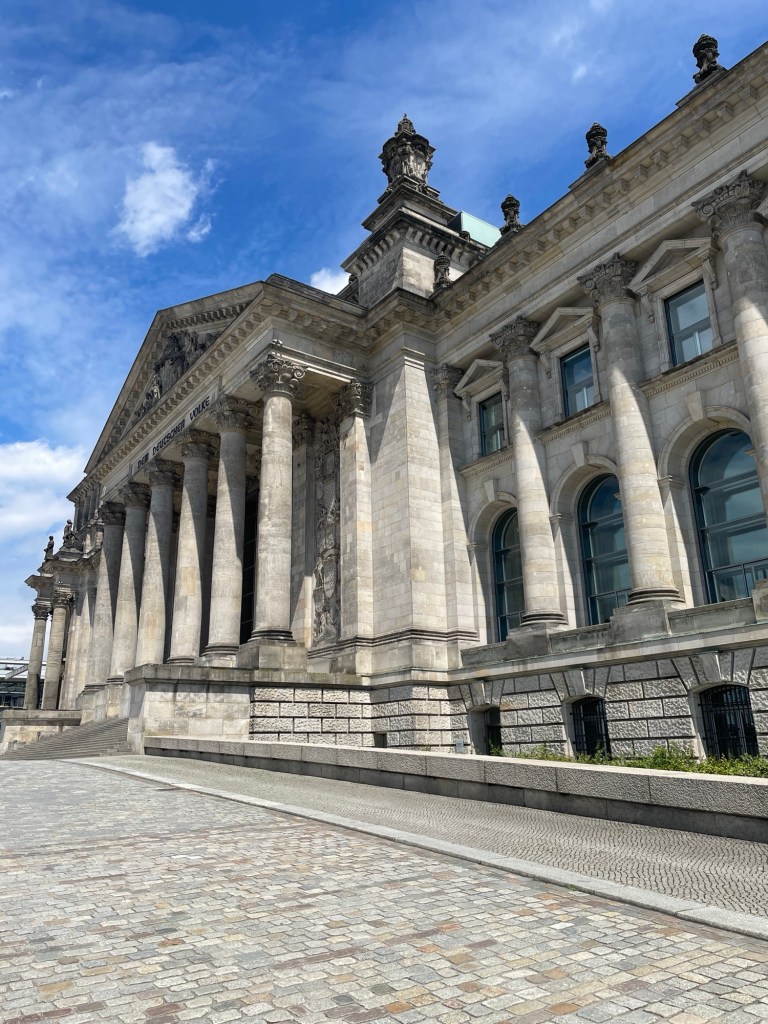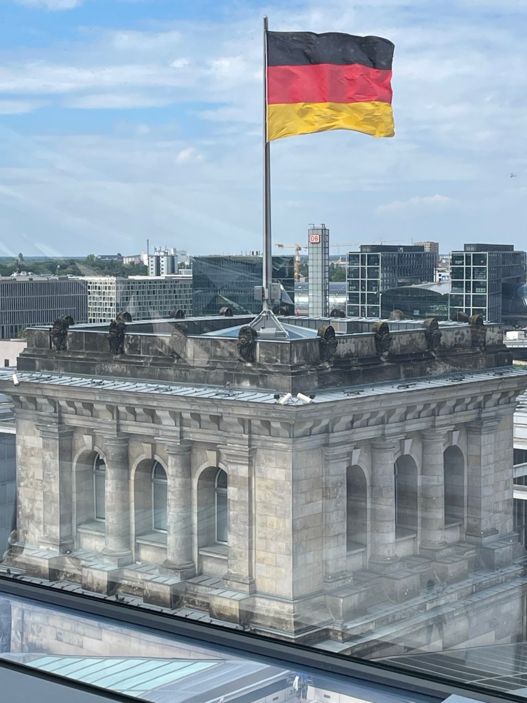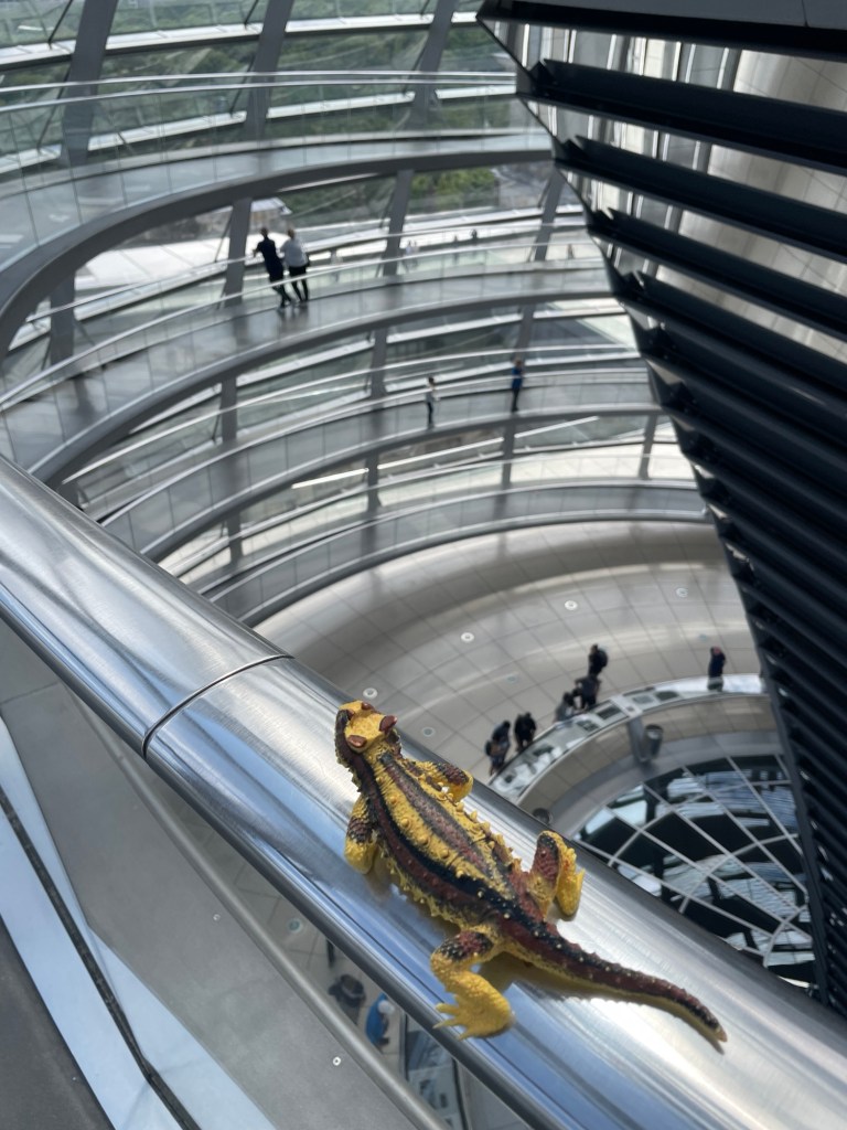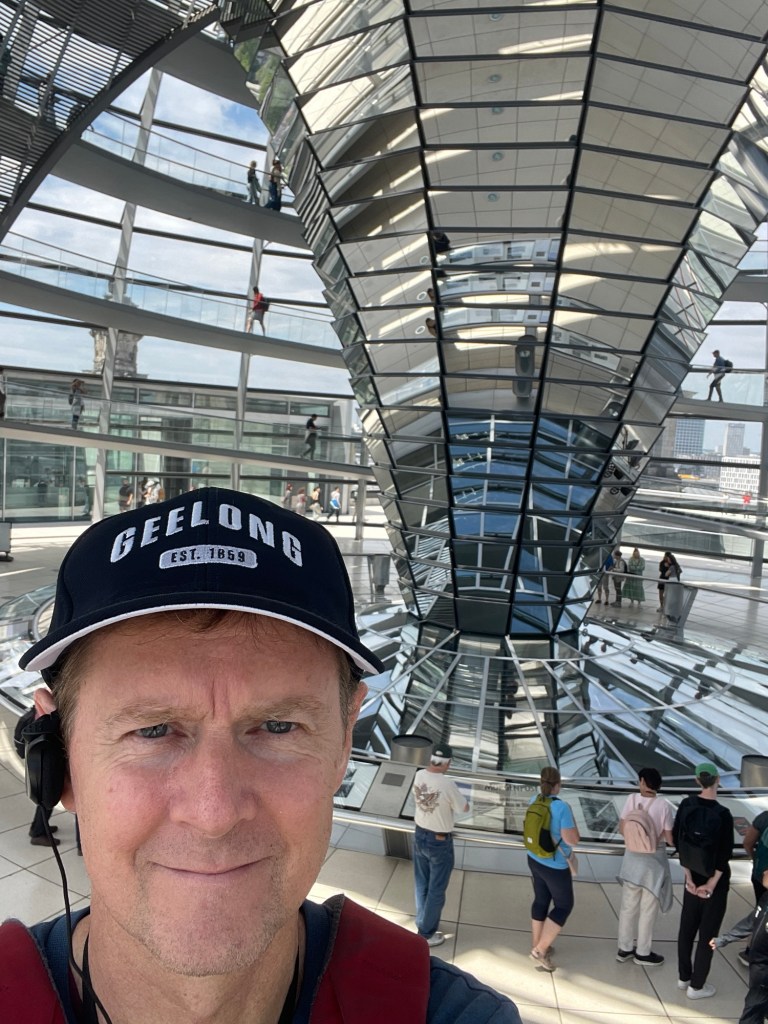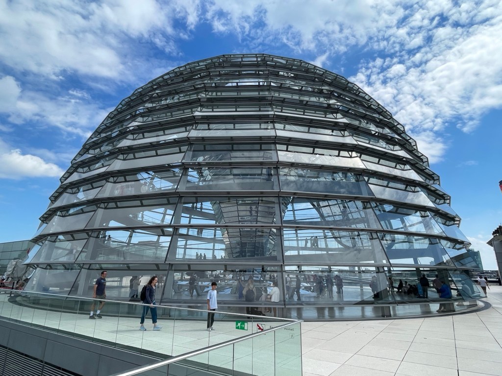 We then visited the Reichstag which is the German Parliament building. Originally built in 1894, it was completely renovated and a new glass dome constructed on top starting in 1994. Mamfa marvelled at the impressive architecture and engineering of the dome such that the helical pedestrian ramps appear to float around the dome.