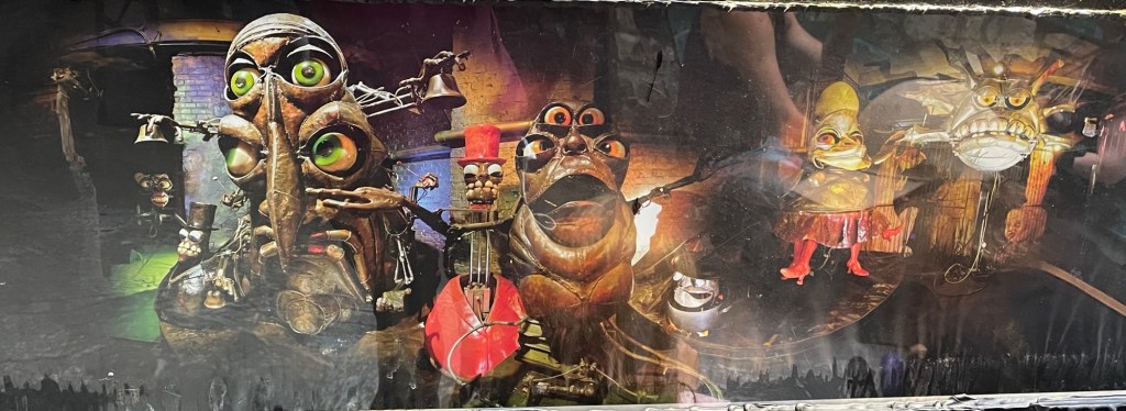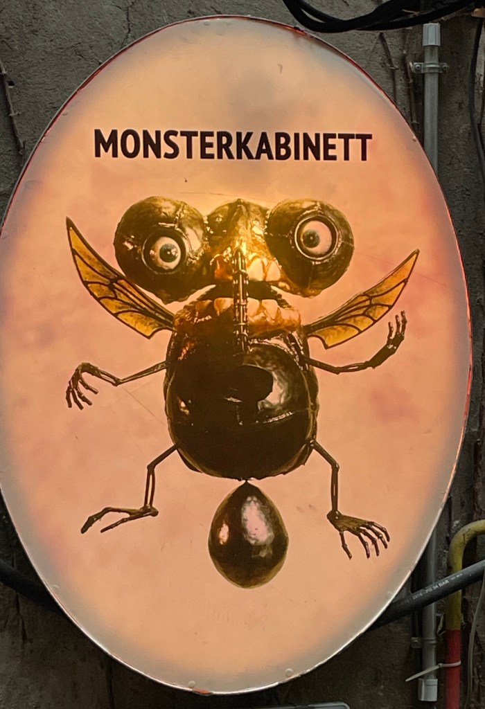 We then checked out the very quirky Monsterkabinett. It had crazy looking mechanical monsters controlled with a huge amount of electronics and accompanied by loud techno music as they played music, tried to scare people and blew their own heads off. Very impressive but weird contraptions in a show that was a lot of fun. No photos allowed during the show so those below are the signs outside.