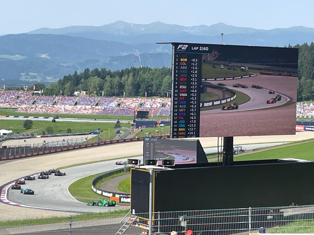 What a looong day. We rose at 3am to get to the bus transfer from Salzburg to the Red Bull Ring for the Austrian Grand Prix. We arrived at the track at 7:15 which seemed very early but the first race (Formula 3) was at 8:30.
