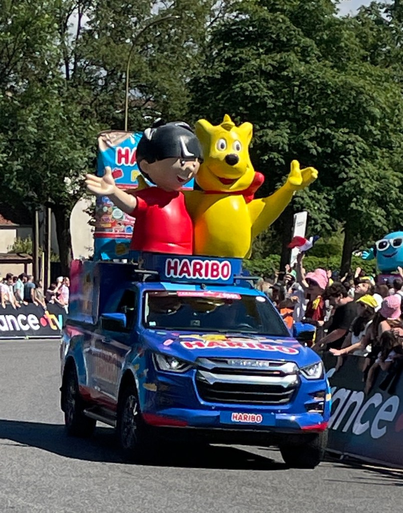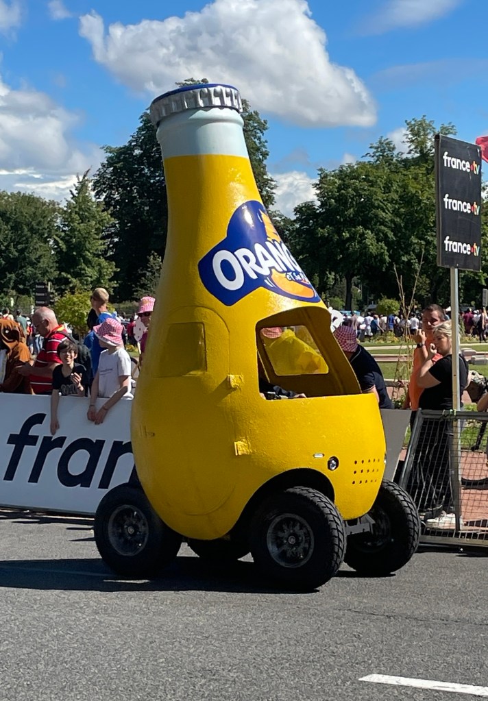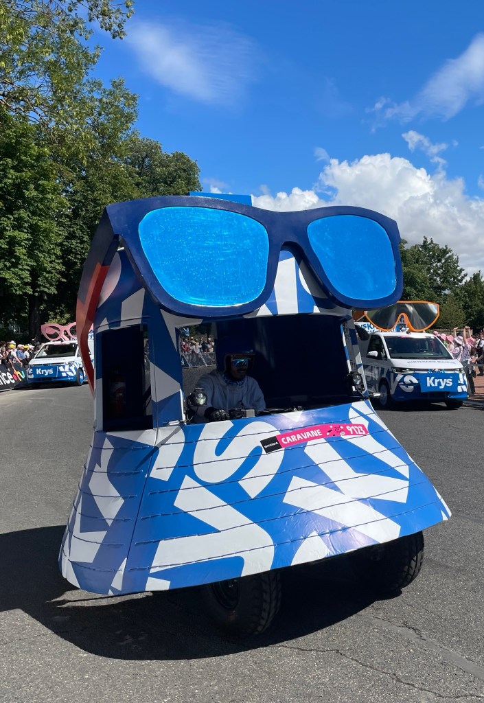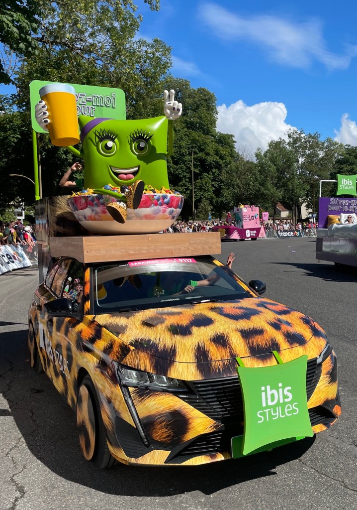 The official caravan was a crazy mix of vehicles advertising all sorts of products and throwing samples into the crowd.