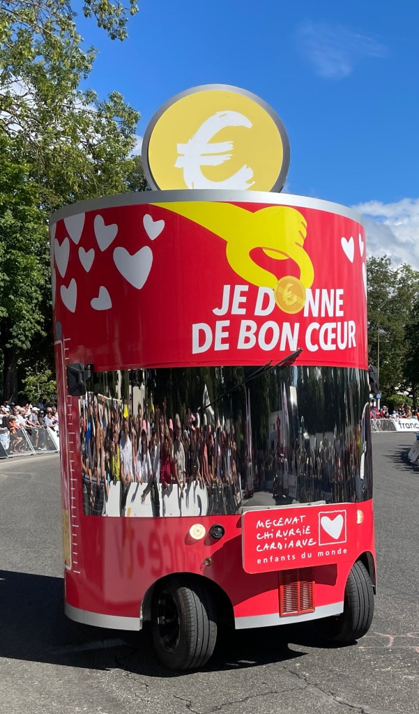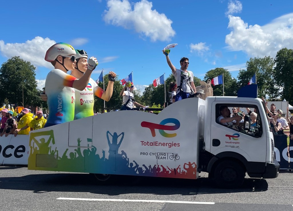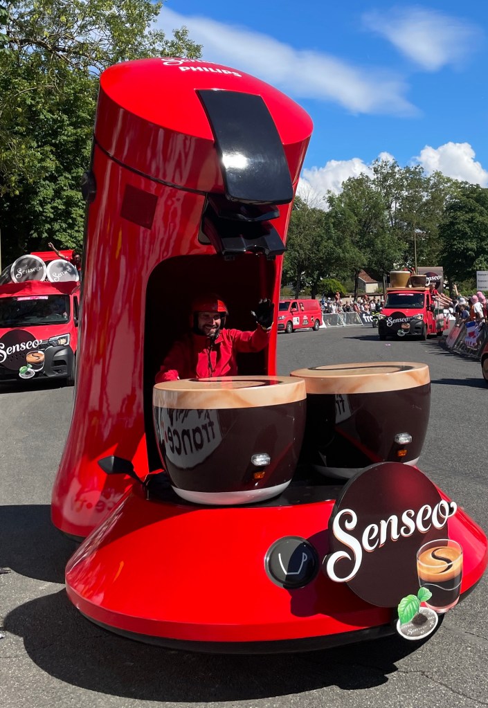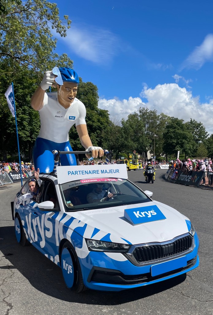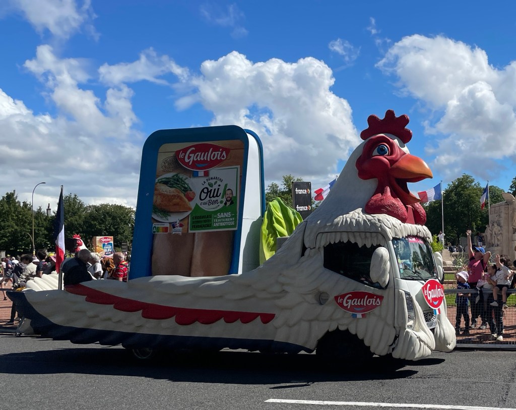 The official caravan was a crazy mix of vehicles advertising all sorts of products and throwing samples into the crowd.