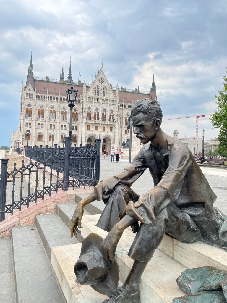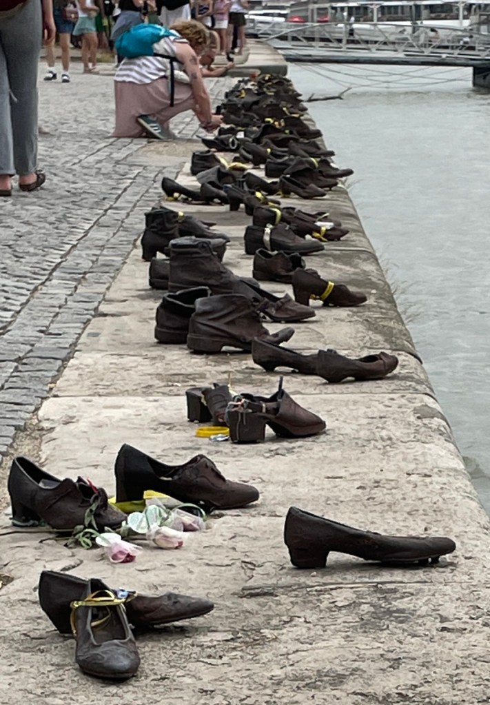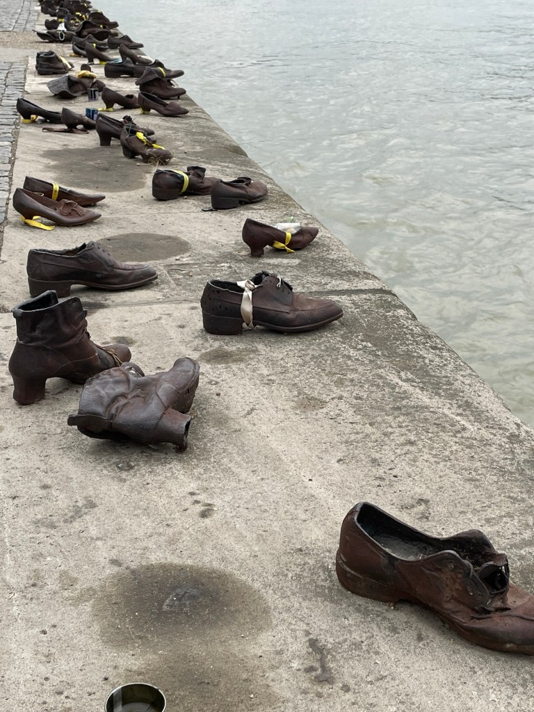 On the banks of the Danube there is a memorial to those killed in the Holocaust with lots of bronze shoes left behind.