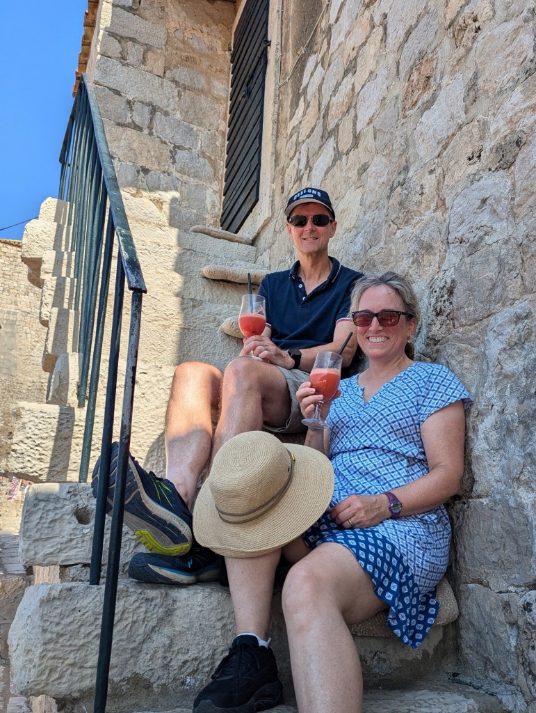 After a great dinner of calamari for Mamfa and black cuttlefish risotto for Mawfa (including getting a black tongue and black teeth from the cuttlefish ink), we took the cable car to the top of Mt Srd for city views and an interesting exhibition of the Croatian independence war in the fort at the top.