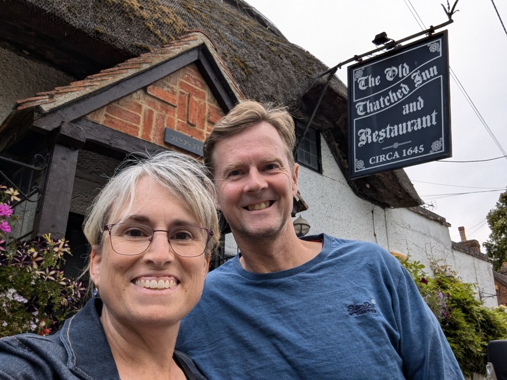 We finished the day with dinner at The Old Thatched Inn (built in 1645), a video chat with Geoff’s sister Jane in the US and watching Geoff’s nephew Andrew’s short film that he wrote and directed in New Zealand – very clever fellow.