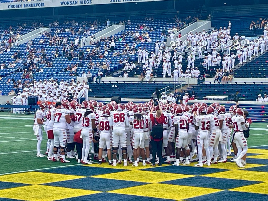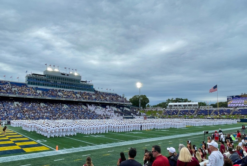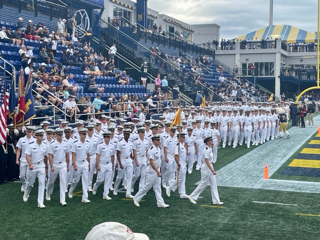 Prior to the game, over 2,000 Navy students marched out onto the field.